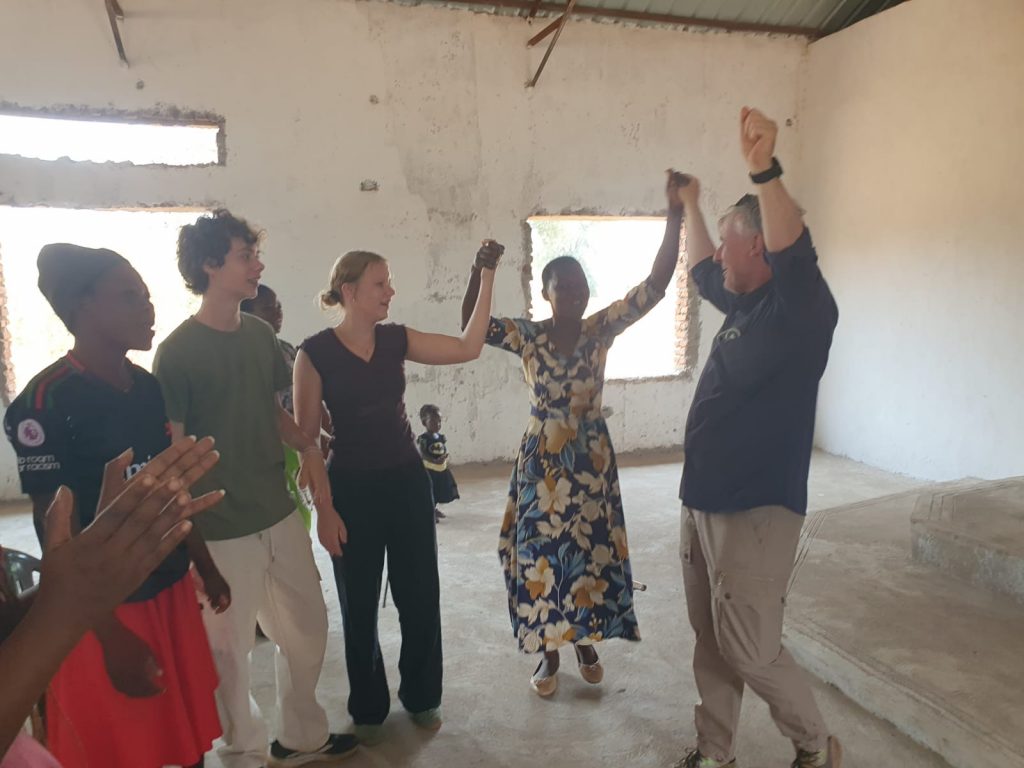Nach dieser Stärkung gingen wir erneut mit unseren Partnerschülern und einem Konvoi los, dieses Mal zur Children’s Corner. Dort wurden die Bewohner (vor allem die Kinder) über AIDS aufgeklärt und auf HIV getestet. Ein 12-jähriges Mädchen wurde leider positiv getestet. Gleichzeitig wurde die Stimmung durch tänzerische und sportliche Aktivitäten augelockert. Im Anschluss lud uns Max, der Vater von Austauschschülerin Otria, zum Abendessen zu sich nach Hause ein. Dort erwartete uns leckeres traditionelles malawisches Essen, womit wir uns den Magen vollschlugen. Jökla und Karo