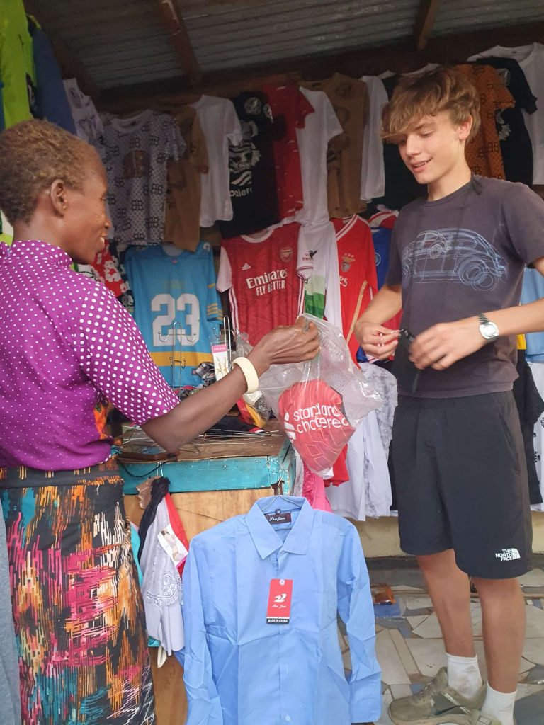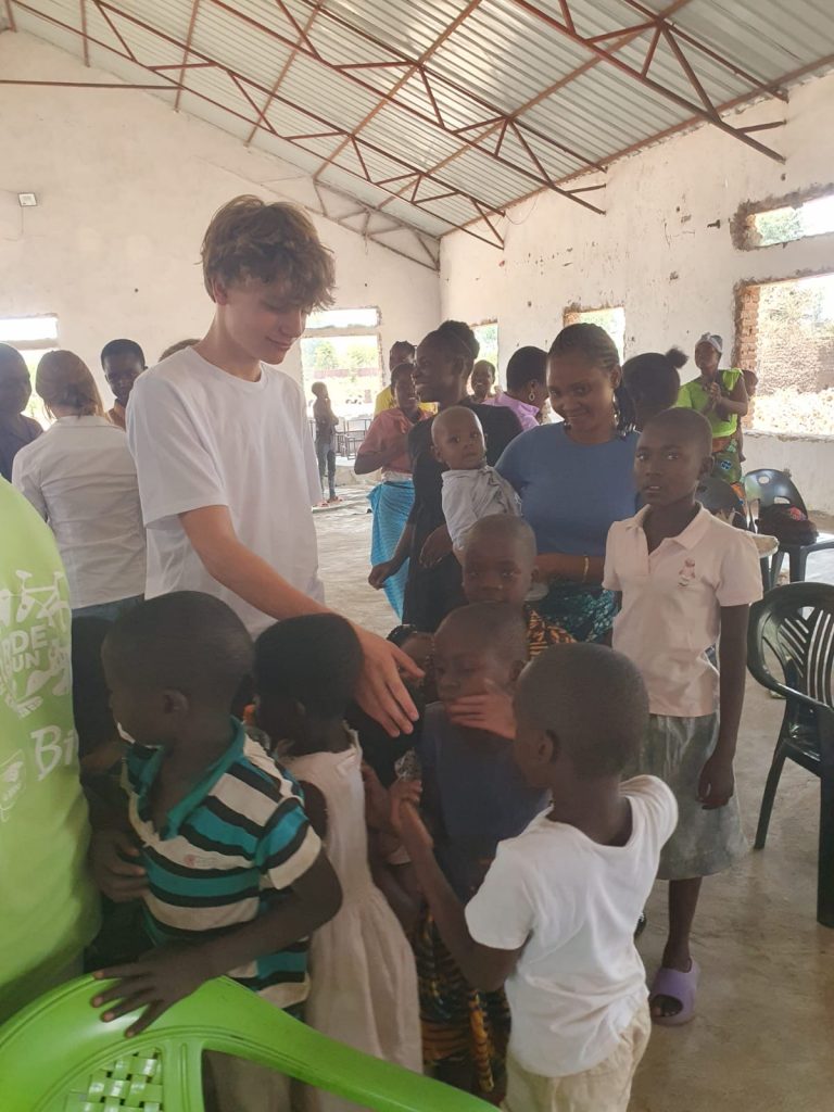 Heute war ausschlafen angesagt. Naja, was heißt ausschlafen, aber wir konnten zumindest etwas länger als sonst schlafen, denn es gab erst um 9 Frühstück. Um 10 ging es dann zum Gottesdienst, denn heute ist Sonntag. Der Besuch eines Gottesdienstes klang für mich in erster Instanz nicht wirklich spannend, doch ich merkte ziemlich schnell, dass die Skepsis ziemlich schnell in Freude und Spannung umschlug. Zu Beginn wurde erstmal ein wenig von 2 Pastoren erzählt. Einer davon war Humphreys, welcher gleichzeitig Lehrer ist und uns die ganze Woche begleitet. Ich finde dieses Engagement wirklich erstaunlich und ich habe größten Respekt vor Humphreys und vor allem vor Henry, zudem ich noch komme. Der andere Pastor war mir noch nicht bekannt, doch seine positive Energie schwappte schnell zu mir rüber. Mit welcher Art und Weise er ein Gebet oder eine Geschichte rüberbringt, ist wirklich atemberaubend. Er hat durchgehend ein Lächeln auf den Lippen, aber er erzählt trotzdem so eindringlich und seriös, dass ich ihm alles abkaufen würde. Nachdem die beiden Pastoren ein Gebet gesprochen haben und Fragen über Gott gestellt haben, wurden wir zu einem gemeinsamen Tanz eingeladen und anschließend noch zum Singen. Am Anfang waren wir noch etwas verhalten, doch durch die lockere Art der anderen wurden wir angesteckt und letztendlich waren alle am Tanzen und jeder war glücklich. Ich glaube diesen Moment werde ich wahrscheinlich nie vergessen, wie wir lachend mit den Einheimischen getanzt haben. Man hat sich verbunden gefühlt und man hat die gemeinsame Energie gespürt. Auf jeden Fall ein Highlight dieser Reise, von dem wir 8 noch unseren Enkeln erzählen werden. Anschließend wurde ein Vergleich zwischen einem frischen Mangozweig mit Früchten und einem vertrockneten Mangozweig erklärt, wodurch der Sinn des Lebens sehr gut rüberkam. Der Zweig mit den Mangos steht für den fleißigen guten Menschen. Mach was aus deinem Leben, so dass Früchte entstehen für andere. Ohne Früchte ist kein Leben möglich. Dabei kann man auf die trockenen Blätter verzichten und sie entfernen, wie z.B. ein Blatt für Depressionen, ein anderes für Stress usw. Ein Vergleich für‘s Leben, mehr muss man da nicht sagen. Zur Krönung wurde gegen Ende des Gottesdienstes Henry, unser Ansprechpartner und Lehrer, vom Pastor zum Referent befördert. Man merkt, wie Henry von jedem gemocht wird, da er mit seinem Engagement jedem helfen will. Jeder hat es Henry gegönnt, denn was er alles macht verdient großen Respekt.