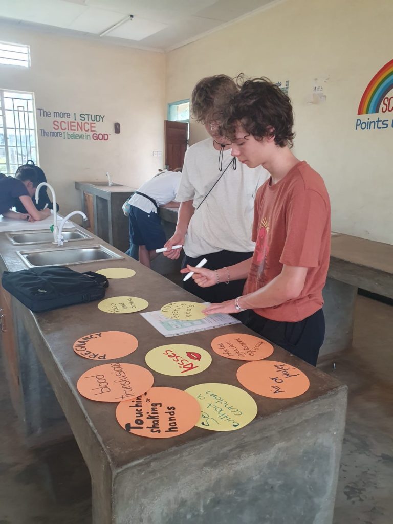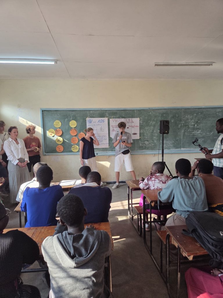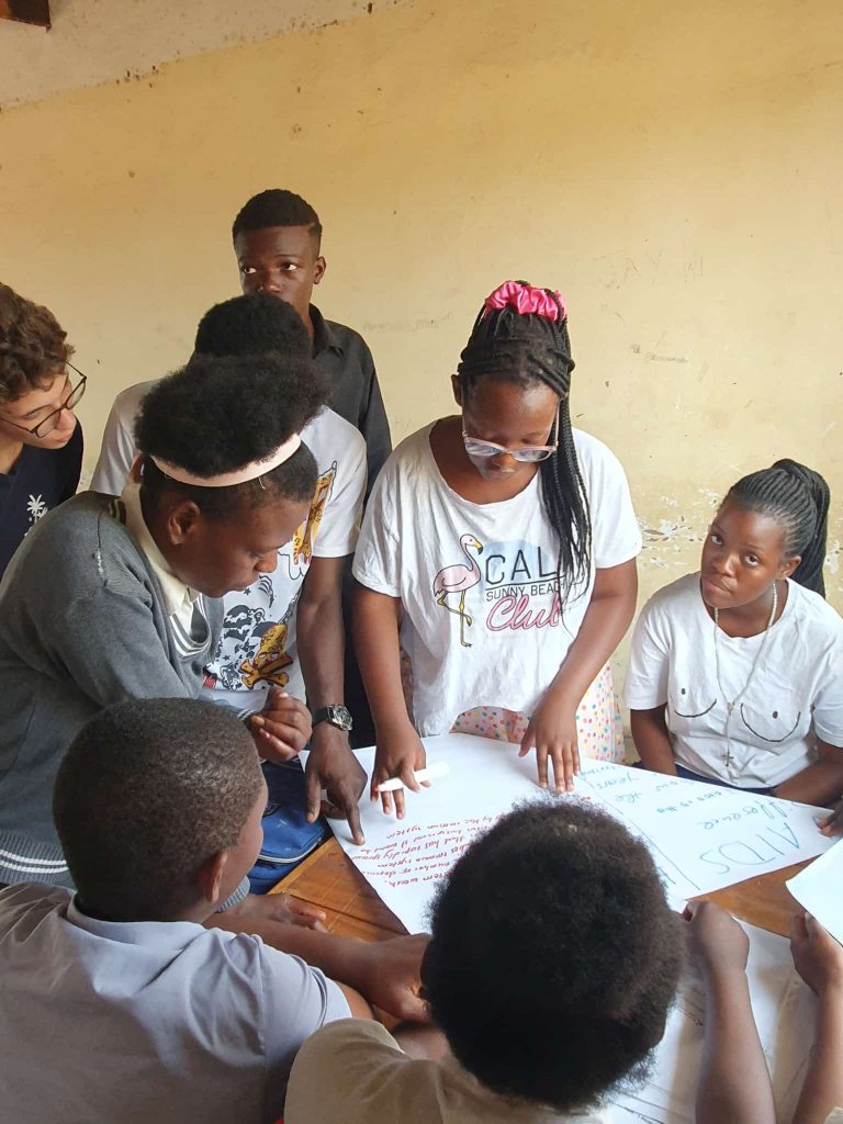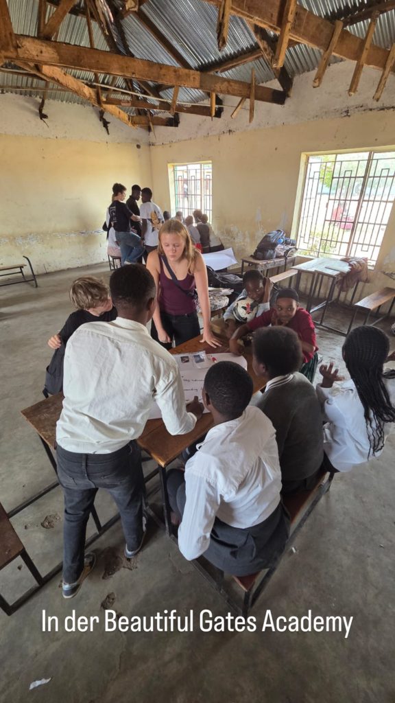 Nach unserem schmackhaften Frühstück ging’s zur Beautiful Gate Acadamy, wo wir auf freundliche Art und Weise mit dem Kollegium bekannt gemacht wurden. Danach waren wir an der Reihe und begrüßten die Schülerschaft, um anschließend den Lernenden unser Aids-Präventionsprojekt näher zu bringen. Hierbei erarbeiteten sich die Schüler in kleineren Gruppen verschiedene Unterthemen, während wir für Fragen bereitstanden. Nach dieser Arbeitsphase wurden die Erkenntnisse präsentiert, um dann einige von uns entwickelte Spiele zu spielen, sodass HIV besser verstanden wurde.