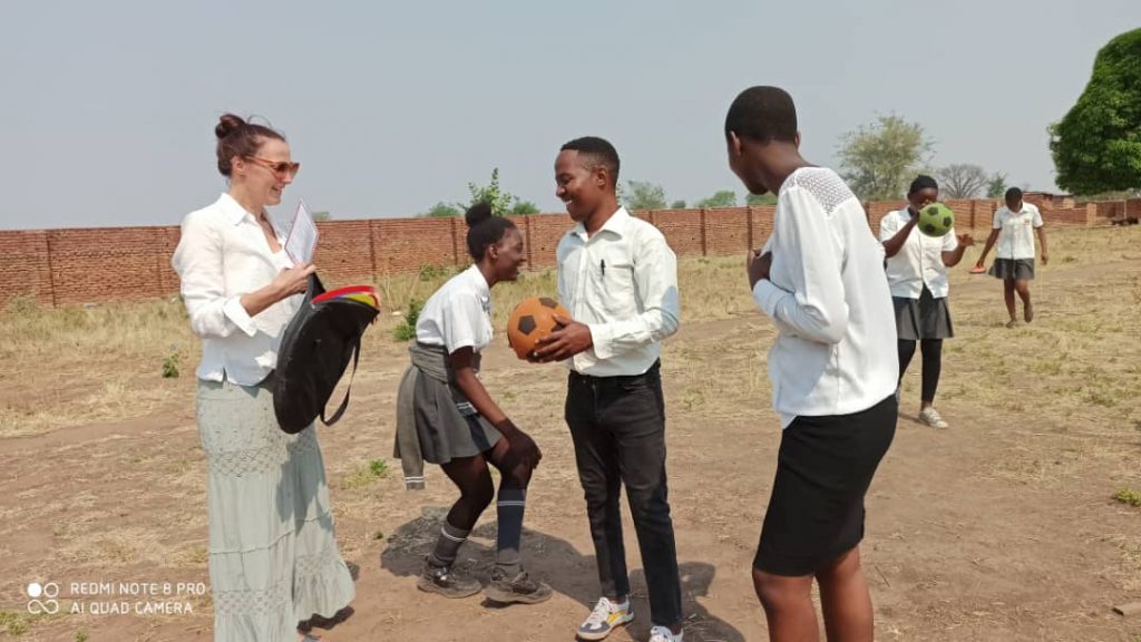 Am Mittwoch ging es nach dem Frühstück zur Kachere Primary School. Dies ist eine von Deutschland mitfinanzierte, staatliche Schule bis zur 8. Klasse. Dort wurden wir von mehr als 300 Schülern abgeholt, sehr lieb begrüßt und haben uns umgesehen. In jedem Klassenraum hat eine Klasse mit 60-80 Schülern Unterricht. Dort durften wir zuschauen und uns vorstellen. Nachdem wir alle vier Klassen besucht hatten, spielten wir mit den Kindern verschiedene Staffelspiele und Brennball. Es hat allen viel Spaß gemacht und natürlich gab es auch kleine Belohnungen. Die Seifenblaseparty durfte natürlich nicht fehlen.