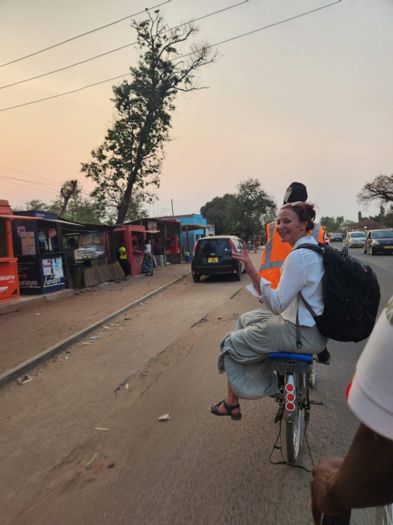 Wir Anderen haben uns mal wieder auf den Weg zum Markt gemacht und dort Stoffe und Trikots gekauft. Mittlerweile haben wir so viele Trikots, dass wir eine eigene Fußballmannschaft gründen könnten. Mit dem Fahrradtaxi sind wir dann zurück zur Lodge gefahren, wo wir uns alle getroffen haben. Es ist immer wieder aufregend auf den Fahrrädern durch die Straßen zu fahren, coole Sache! Unser Nachmittagsplan war es, mit unseren Austauschschülern einen nahegelegenen Nationalpark zu besuchen. Wir alle waren sehr enttäuscht, dass es keine Giraffen gab, haben uns aber umso mehr über die Meerkatzen, Antilopen, Paviane und Zebras gefreut. Bevor wir zurück gefahren sind, haben wir uns den Sonnenuntergang am See angeschaut. Es ist echt beeindruckend, wie rot die Sonne hier untergeht. Jetzt warten wir alle gespannt auf das Abendbrot, es gibt Pizza! Das Essen hier ist lecker, aber die Abwechslung tut ganz gut.