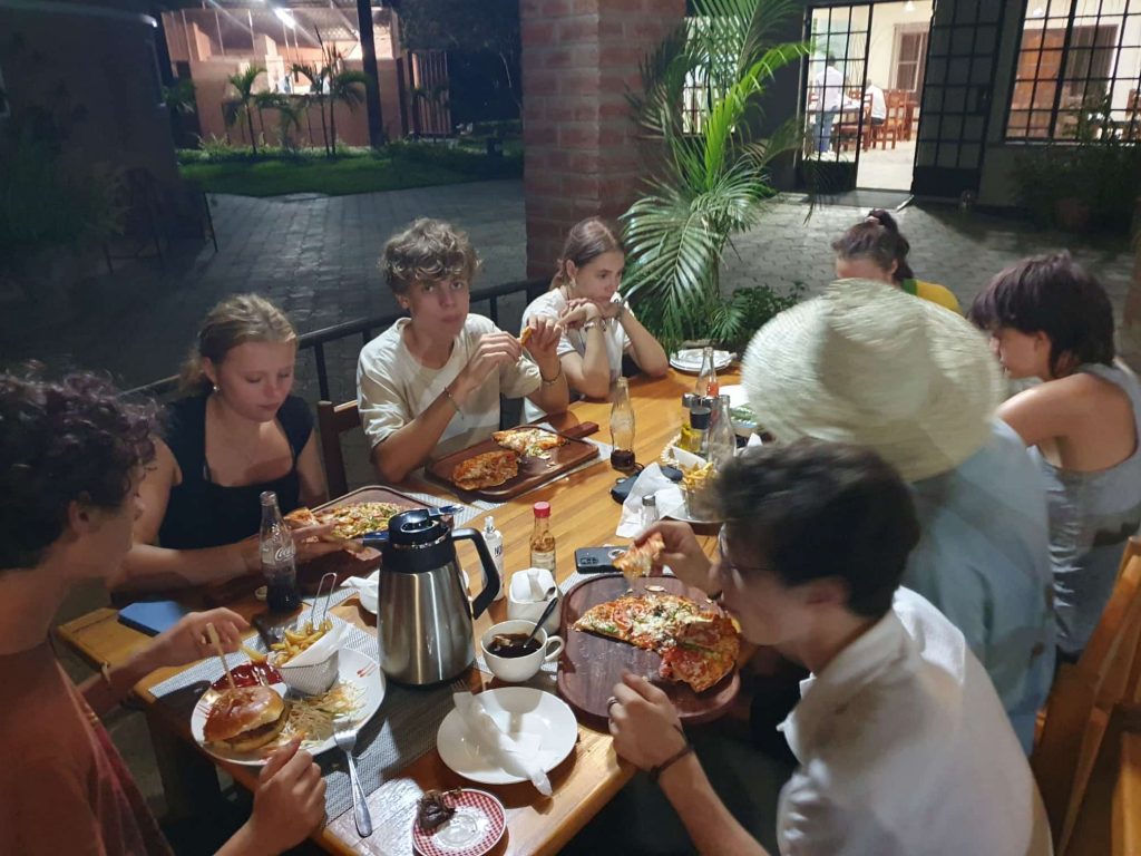 Trotzdem konnten wir viele bunte Fische sehen und hatten eine Menge Spaß. Am Abend aßen wir noch am Strand. Nach einer langen Wartezeit bekamen wir endlich unser Essen. Viele von uns entschieden sich für Nudeln, da wir hier jeden Tag Kartoffeln oder Reis essen. Simon