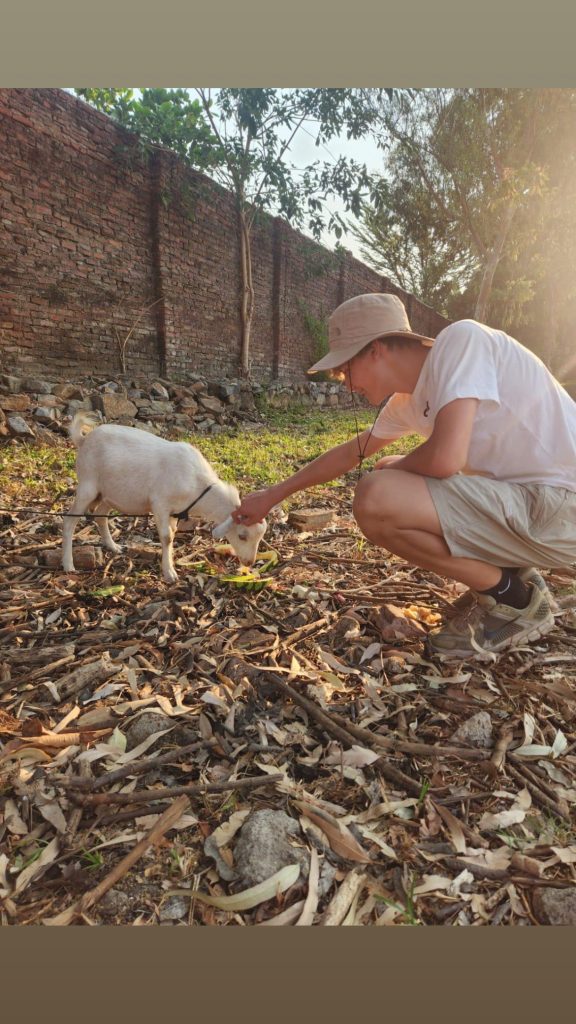 Der Tag begann damit, dass wir den Kindergarten der MASO besuchten, welcher sich direkt auf dem Gelände befindet. Uns wurde eine kleine „Show“ von den Kindern geboten, was ich sehr schön fand und mir ein Lächeln ins Gesicht gezaubert hat. Nachdem wir uns kurz vor den Kindern und den Betreuern vorgestellt haben, übergaben wir noch kurz ein paar Geschenke und machten uns dann auf den Weg weiter zu einer Grundschule. An der Grundschule wurden wir von der Direktorin in ihrem Büro begrüßt und haben einen kleinen Rundgang bekommen und haben kurz in ein paar Klassen reingeschnuppert. Nachdem wir eine Pause zwischen unserem Programm eingelegt haben, machten wir uns auf den Weg zurück zur MASO, um da unseren Abschied zu feiern. Herr Schröder, Joel und ich waren schon eher dort, da der Rest der Gruppe noch eine Matratze für eine Frau gekauft haben, welche sie sehr nötig hatte und auch mit 60 das erste Mal auf einer Matratze schlief. Wir ließen unseren Tag damit ausklingen, unseren Abschied bei der MASO zu feiern. Die Mitarbeiter bereiteten ein schönes Essen vor. Es gab Reis, Hähnchen, Soya Pieces, Kartoffeln und Kraut und es war sehr erstaunlich, wie viel sich die Leute auf ihre Teller gemacht haben, das wären für mich zwei Portionen gewesen. Als das Essen fertig war, ging es über zum Abschlussprogramm. Zuerst haben wir ein paar Tanzeinlagen von den Schülern der BGA gesehen, welche das Ganze sehr gefühlt haben. Nach den Tänzen wurde der erste Entwurf von unserem Film gezeigt und ein paar Videoaufnahmen der letzten beiden Tage. Als Abschluss wurden noch verschiedene Reden gehalten, von Mitarbeitern der MASO, der BGA und Schülern beider Schulen, was wirklich sehr emotional war, da sich alle verabschiedeten und sich bei uns bedankten.